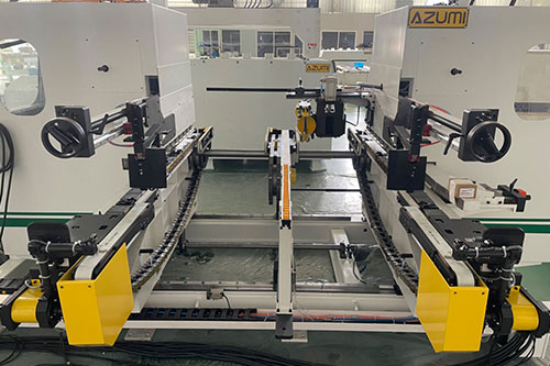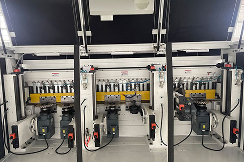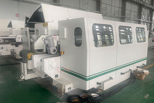 是用來(lái)加工地板的端頭榫槽的,他一般分為6軸(實(shí)木)8軸(復(fù)合)10軸、12軸(復(fù)合、鎖扣),除第1軸是跳刀軸與縱銑不同外,其余軸與縱銑略同,刀具與鏈條***小距離,以及上壓緊、輔助壓緊裝置也與縱銑相同。